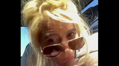 Streetwalker wearing sunglasses gives an fave deep throat and takes a giant facial